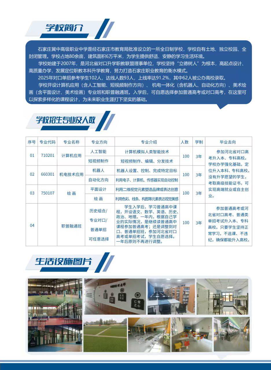石家庄冀中职业高级中学招生简章