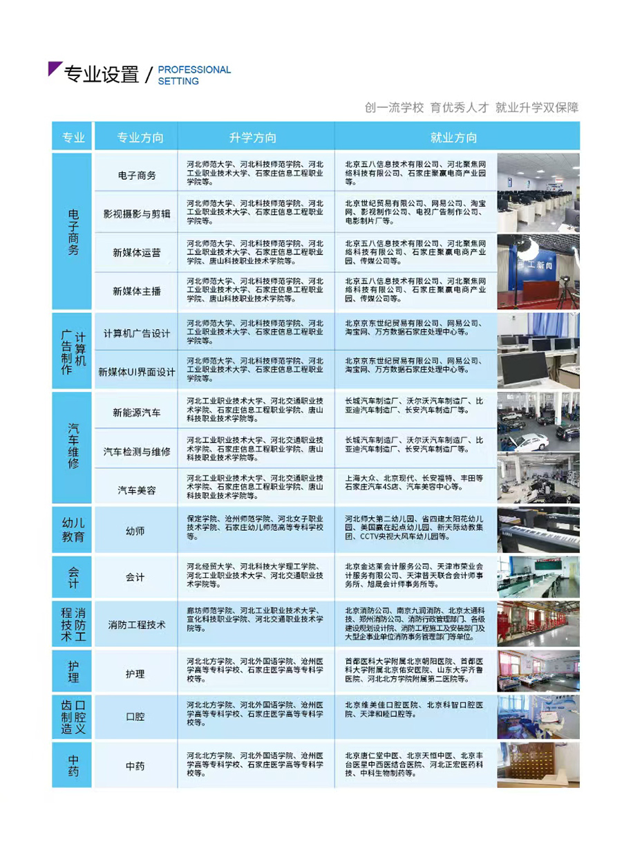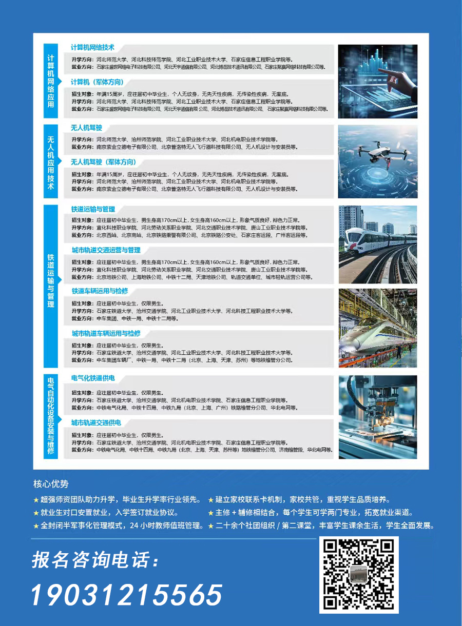 河北工程职业技工学校是一所综合类全日制中职学校。招生专业:消防工程技术、电子商务专业、幼儿教育专业、汽车维修专业、 中药专业、护理专业、口腔义齿制造专业、无人机应用技术、铁道运输与管理专业。
